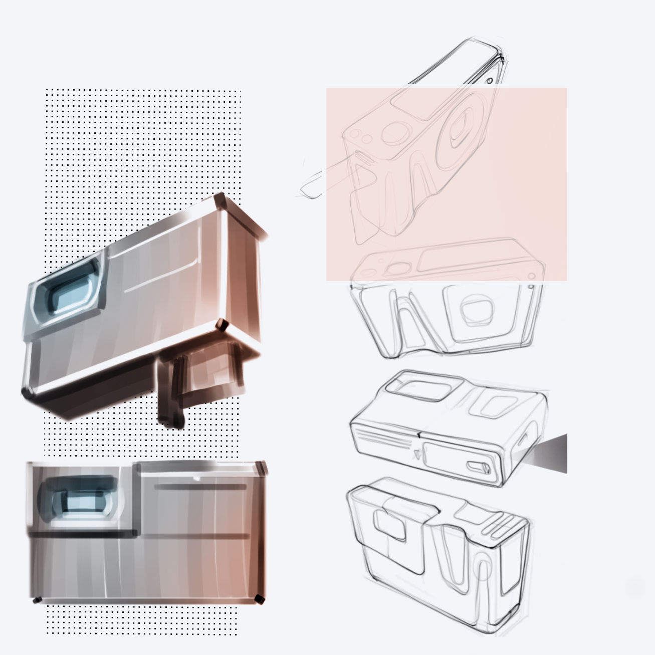 Market Research, Sketch Ideation, Prototyping, Testing, Rendering
